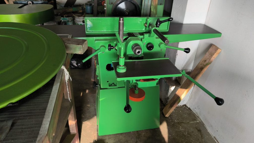 Máquina combinada ideal para carpintería: garlopa para aplanar y escuadrar madera + taladro/mortajadora para perforaciones y ensambles. Ahorra espacio en el taller, mejora tiempos de preparación y facilita trabajos de muebles en madera maciza.