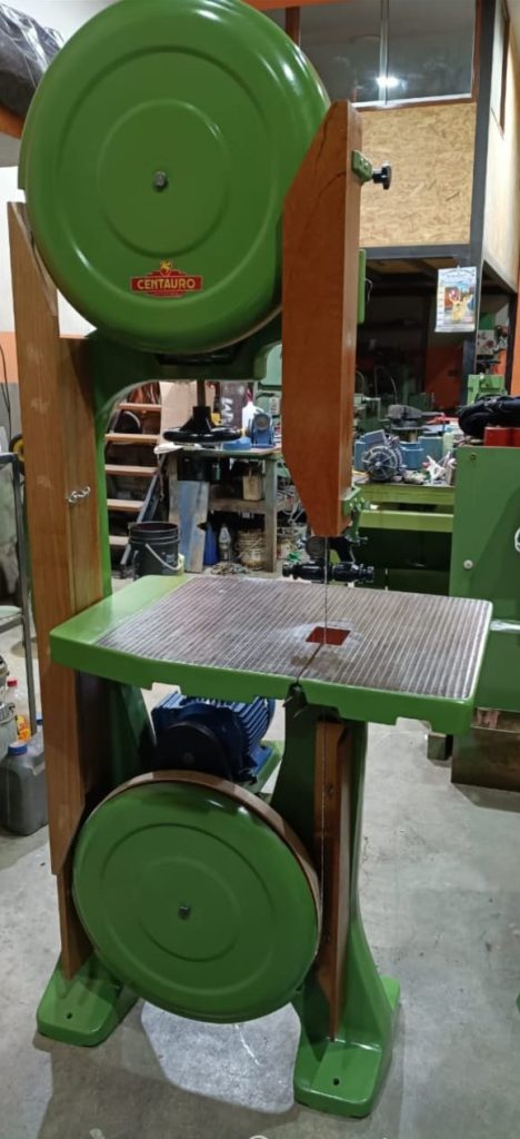 Sierra cinta Centauro de 20″ (50 cm), máquina de procedencia italiana, ideal para carpintería y fabricación de muebles. Diseñada para cortes rectos y curvos, buen control en madera maciza y excelente estabilidad para trabajo de taller.